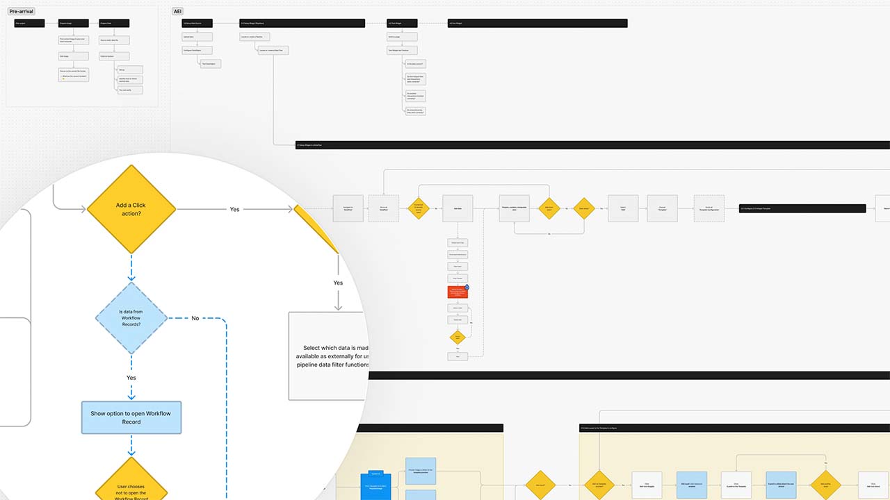 Orientating the experience around the creation and control of a visual flow diagram representing each stage of the preparation process helped users track, check, and change each step much more intuitively.